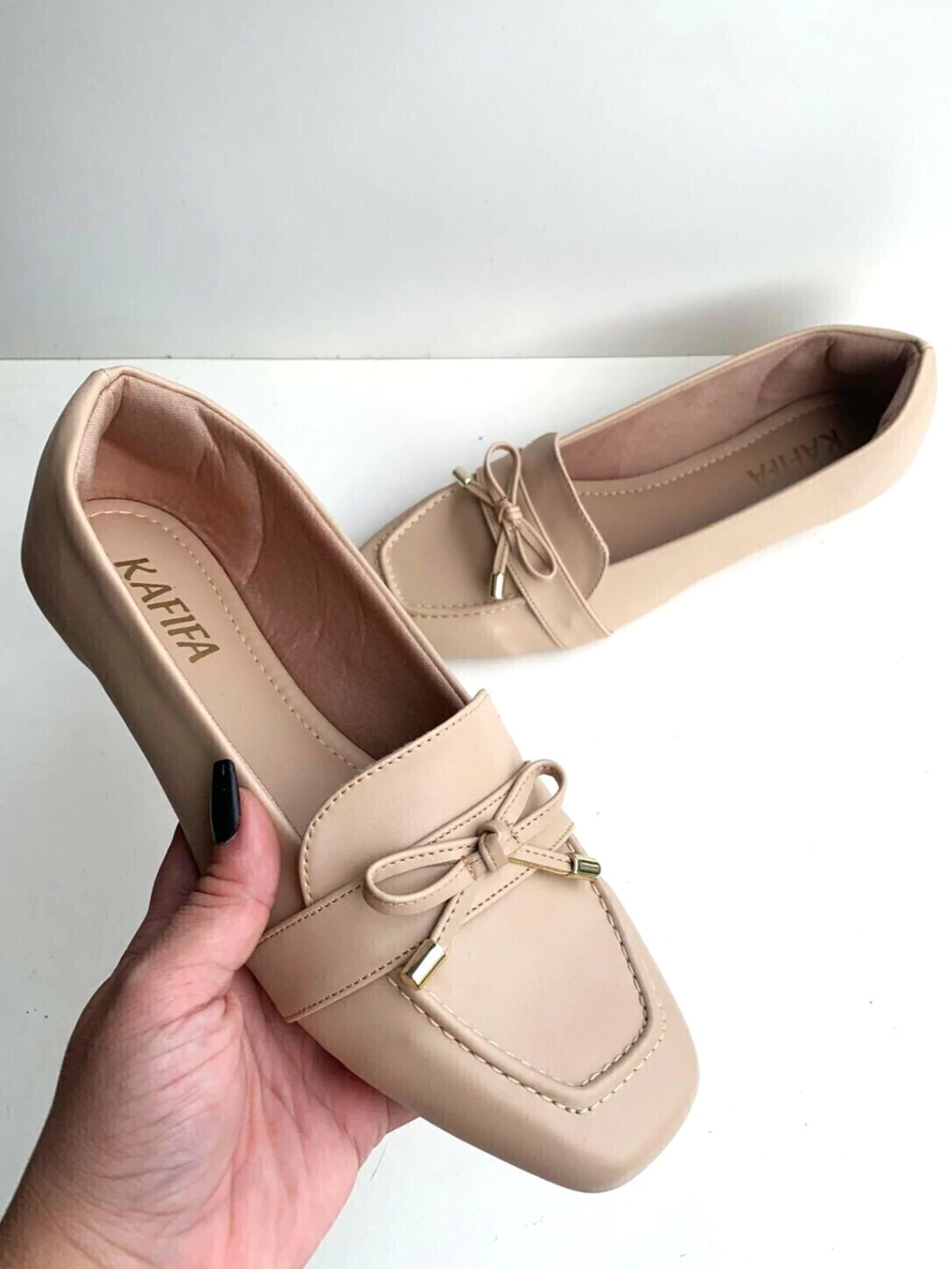 Descubra o Mocassim Silvia Feminino Bege e eleve seu estilo a um novo patamar! Com um design sofisticado de saapatinha com bico quadrado e moderno, este mocassim é a escolha perfeita para quem busca conforto e elegância. Com detalhe de lacinho que fica ainda mais charmoso.