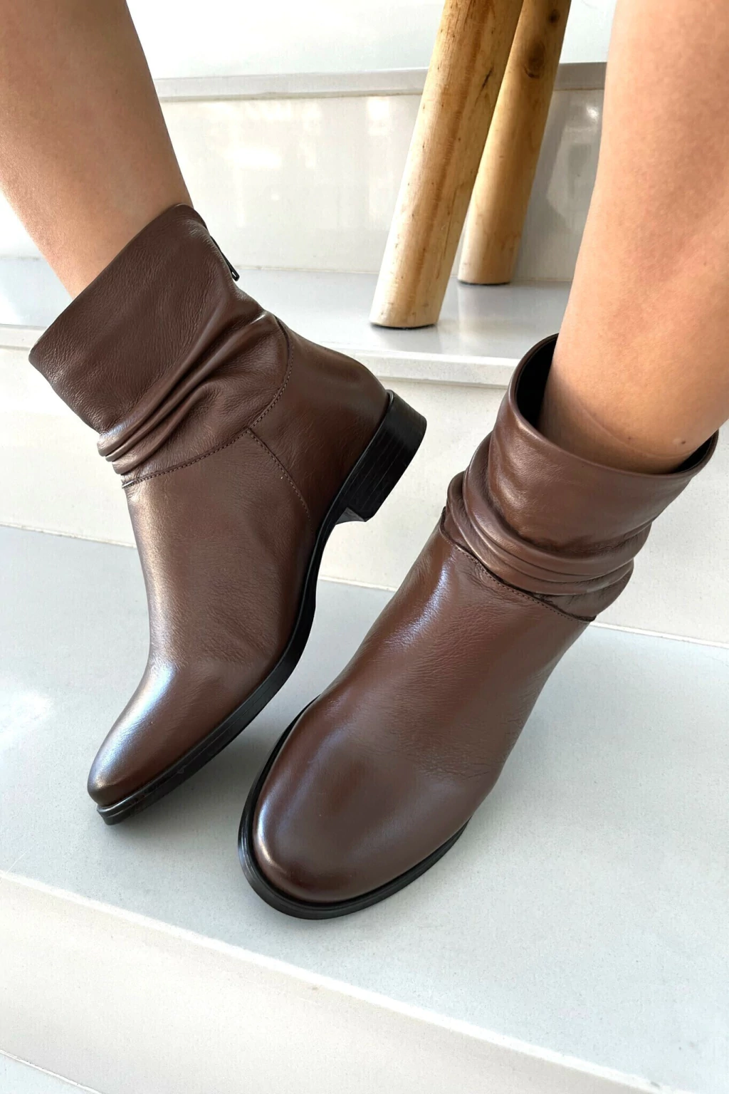Sônia - Bota de Couro Cano Curto Clássica Marrom