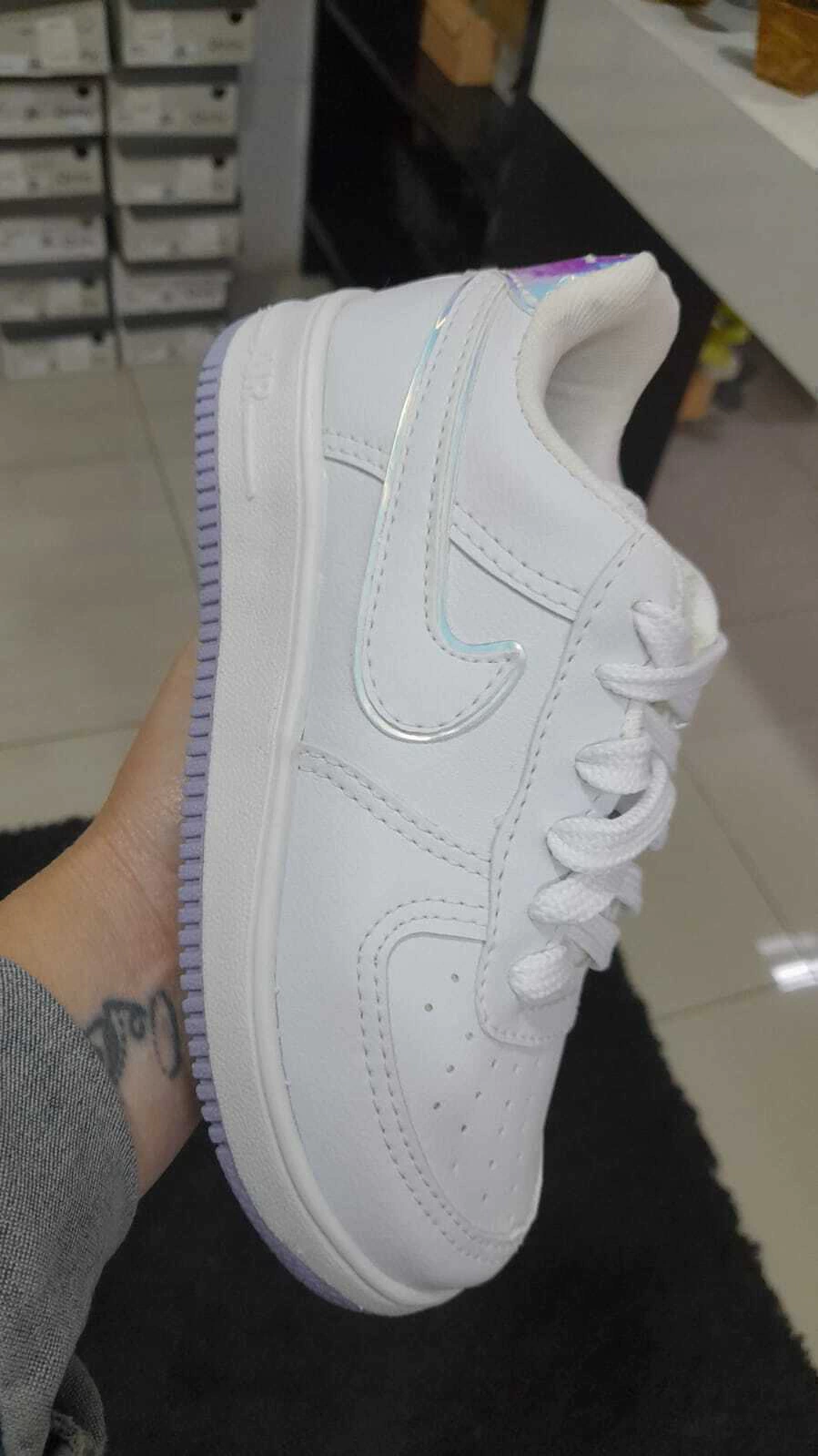 Tênis Air Force Infantil Branco Lilás Holográfico